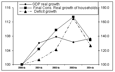 Astfel, indiferent de faptul că va oferi sau nu Guvernul Republicii Moldova darea de seamă referitor la realizarea Strategiei (2004-2006) pe anul 2004, sunt motive de a considera anul 2004 ca început unei politici economice noi. De menționat că, Președintele RM V.Voronin a indicat în martie 2004 că SCERS trebuie să devină documentul social-economic de bază al țării și astfel, toate deciziile în politica fiscală, monetară și socială trebuie să corespundă Strategiei menționate. Conform rezultatelor anului 2004, Departamentul de statistică și sociologie ca de obicei a oferit informații tradiționale referitor la dinamica PIB, sectoarelor industrial și agricol, la activitatea investițională și comerțul extern, inflație, salariu, etc. Este oare posibil, în baza acestor date, de a concluziona despre inovațiile în politica economică? Să presupunem că e realizabil, deși foarte dificil, deoarece statistica este contradictorie. Astfel în 2004, PIB a constituit 32 mld. Lei ( 2,6 mld USD), fiind în creștere cu 7.3% . De remarcat că, pe parcursul anului nivelul prognozat al creșterii PIB a fost modificat de mai multe ori: de la 5% până la 8-10%. Volumul producției industriale a crescut cu 6.9% (media în țările CSI - 7%). În prețuri comparabile, producția agricolă a crescut cu 20.4%, dar aceasta fiind în comparație cu anul 2003, marcat cu insucces (minus 8% față de anul 2002). Volumul investițiilor a crescut cu 8% (în anul 2003 - 7%). De asemenea a crescut exportul mărfurilor moldovenești cu 24.8%, în pofida acestui fapt, deficitul balanței comerciale la fel s-a majorat cu 28,6%, atingînd nivelul de 787,9 mln. USD. Cauză fiind creșterea importului cu 26.5%. În condițiile majorării salariului în sfera bugetară și a pensiilor, de asemenea fluxul considerabil de valută, una din cele mai dificile probleme ale anului a fost inhibarea cresterii inflației. Parametrul planificat s-a situat la nivelul de 10%, efectiv inflația atingîng 12.5% ( 15.7% în anul 2003). Acest fapt poate fi considerat ca succes, luând în considerație că pe parcursul anului 2004 Banca Națională a Republicii Moldova a procurat de la băncile comerciale valută străină în suma de 280 mln. USD, lansând în circulație mai mult de 3.4 mld. Lei. Aceasta constituie 40% din volumul total al masei monetare (M3) pentru începutul anului 2004 sau 60% din masa monetară în moneda națională (M2). Creșterea lichidității în MDL în cantități atât de mari provoca intensificarea proceselor inflaționiste, dar datorita măsurilor Băncii Naționale de sterializare a lichidității excesive, a fost posibil de ținut situația sub control, în orice caz, în 2004. Totodată, se creează o situație paradoxală. Dintr-un punct de vedere, pentru efectuarea modificărilor structurale în economia țarii și atribuirea creșterii economice un caracter mai stabil, businessul simte o necesitate de resurse creditare considerabile. Din alt punct de vedere, în sistemul bancar sunt resurse financiare, care nu se utiliziază eficient. Profitabilitatea hârtiilor de valoare de stat (HVS), plasate de către Ministerul Finanțelor, a remarcat o scădere de la 19.7% în noiembrie 2003 până la 14.9% în aprilie 2004, și pînă la 8% la finele anului. În ianuarie 2005, Profitabilitatea a înregistrat nivelul de 6,8% și a scăzut până la 2.3% la licitația din 15 februarie a.c. Astfel, se observă că rețelele comunicative sunt întrerupte: piețele creditare și de depozite, în valută străină și în lei funcționează separat și, de fapt, nu există nici o legătură între ele, fiind necaracteristice economiei de piață. Să presupunem că participanții pieței, în cazul dat sunt băncile, cunosc faptul că persistă metodele directive și administrative de dirijare a economiei, inclusiv a sistemului bancar și acest caz ei nu se vor grăbi să plaseze resursele libere în credite, dar vor investi în hârtiile de valoare de stat lichide, care în caz de necesitate vor putea fi ușor realizate și în așa mod să îndeplinească consecutivul obiectiv administrativ cu scopul creditării un oarecare sector economic sau proiect. Tradițional, BNM rămâne a fi cel mai puternic jucător în economia de piață al Republicii Moldova, dar și în acțiunile sunt probleme. În anul 2004, masa monetară a crescut de la 8.5 mld. lei până la 11.7 mld. Lei, sau cu 37.7%, iar volumul banilor în numerar de la 2.7 până la 3.4 mld. lei, sau cu 35%. Nivelul de monetizării economiei, ce caracterizează îndestularea economiei cu mijloace bănești a crescut de la 31% în 2003 până la 36.6% în 2004. Concomitent, relațiile dintre întreprinderi și bănci sunt destul de încordate. Resursele băncilor comerciale cresc, în timp ce creditarea economiei se promovează mai puțin activ. Volumul depozitelor a crescut cu 2.3 mld. lei, iar a creditărilor - cu 1.4 mld. lei. Pe fonul creșterii creditelor acordate de către băncile comerciale în lei cu 25.2%, s-a înregistrat o creștere de 54% al depozitelor atrase în lei, inclusiv și depozitele la termen respectiv cu 75%. Astfel, dacă în anul 2003 băncile aveau probleme privind lichiditatea în lei, atunci în anul 2004 situația este inversă, înregistrând-se lichiditate excesivă și ca consecință a acestei situații este problema de utilizare efectivă a resurselor bancare. În general, rezultatele anulului 2004 par a fi optimiste. Întradevăr, al cincilea an consecutiv, s-a înregistrat creșterea PIBului, considerabil a crescut exportul, s-a mărit volumul de investiții; în condițiile unui imens flux de valută în țară, s-a reușit reținerea inflație și asigurarea creșterii veniturilor reale ale populației. Mai mult decât atât, în rezultatul creșterii masei monetare a crescut nivelul de monetizare al economiei și dimensiunile ei de creditare. Deasemenea, ce este important, au crescut rez