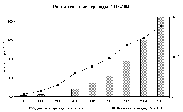 переводами граждан РМ, работающих за рубежом – более 700 млн. долл. США в 2004